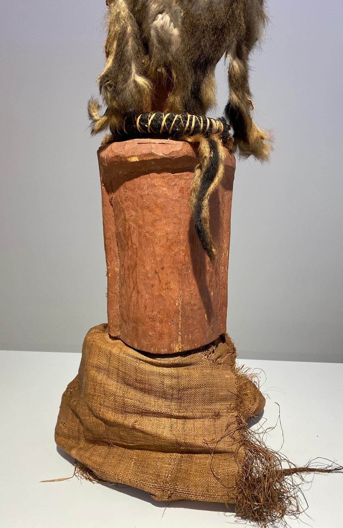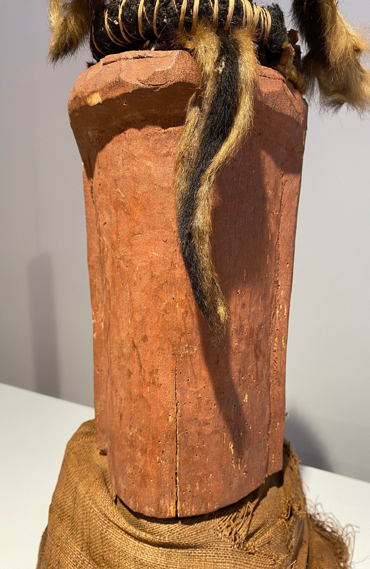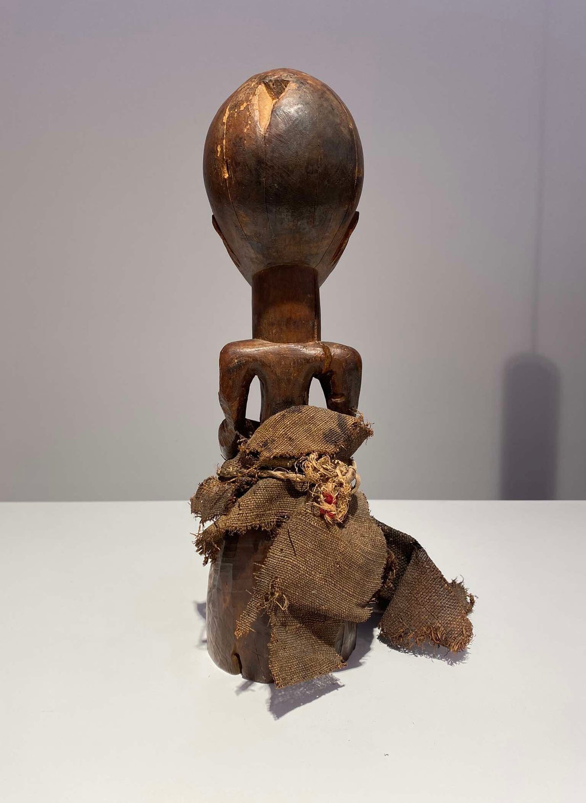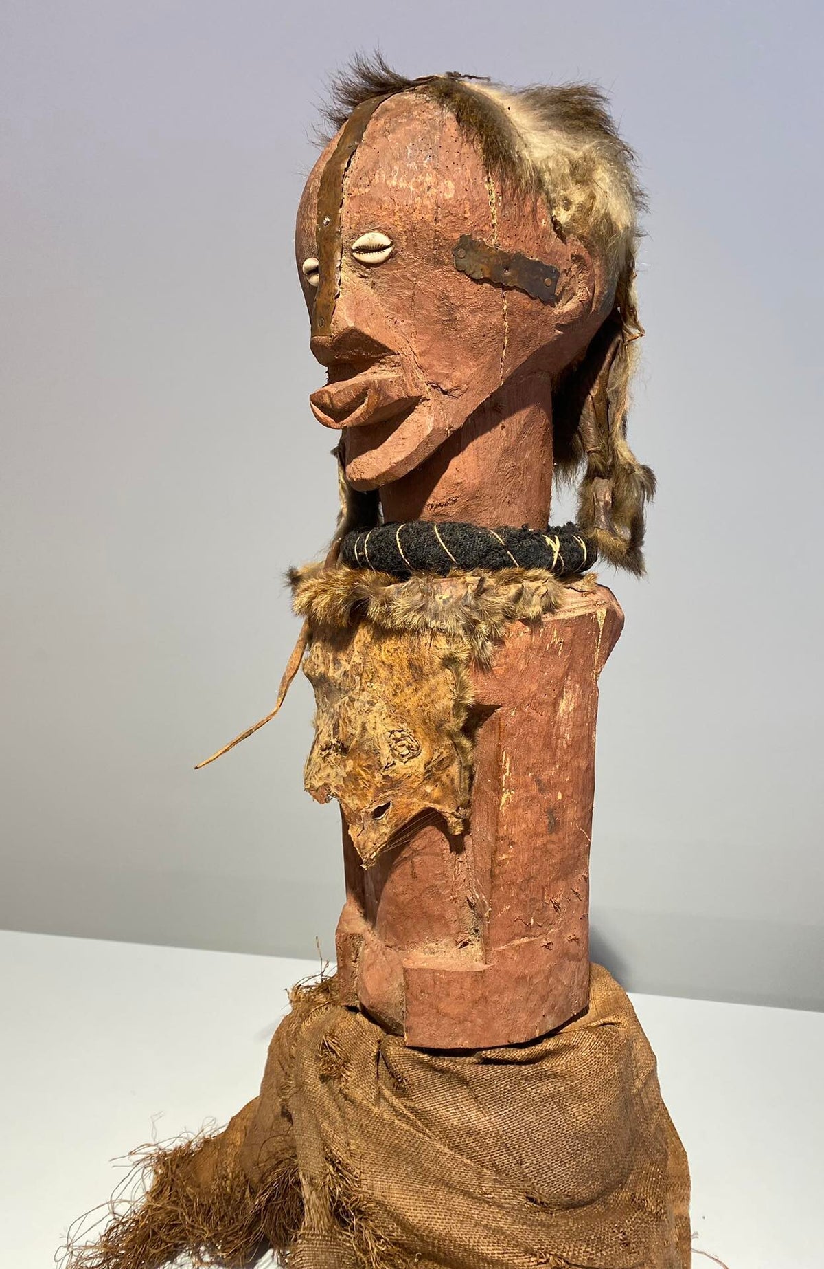 This statue still has the original raffia cloth. Beautiful original deep patina.