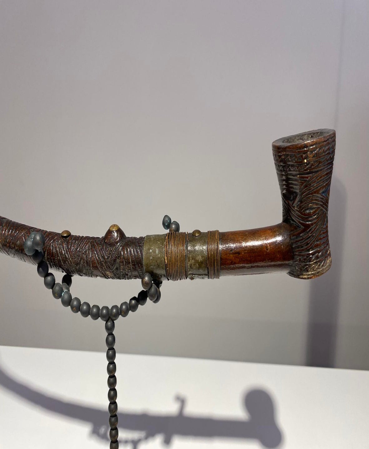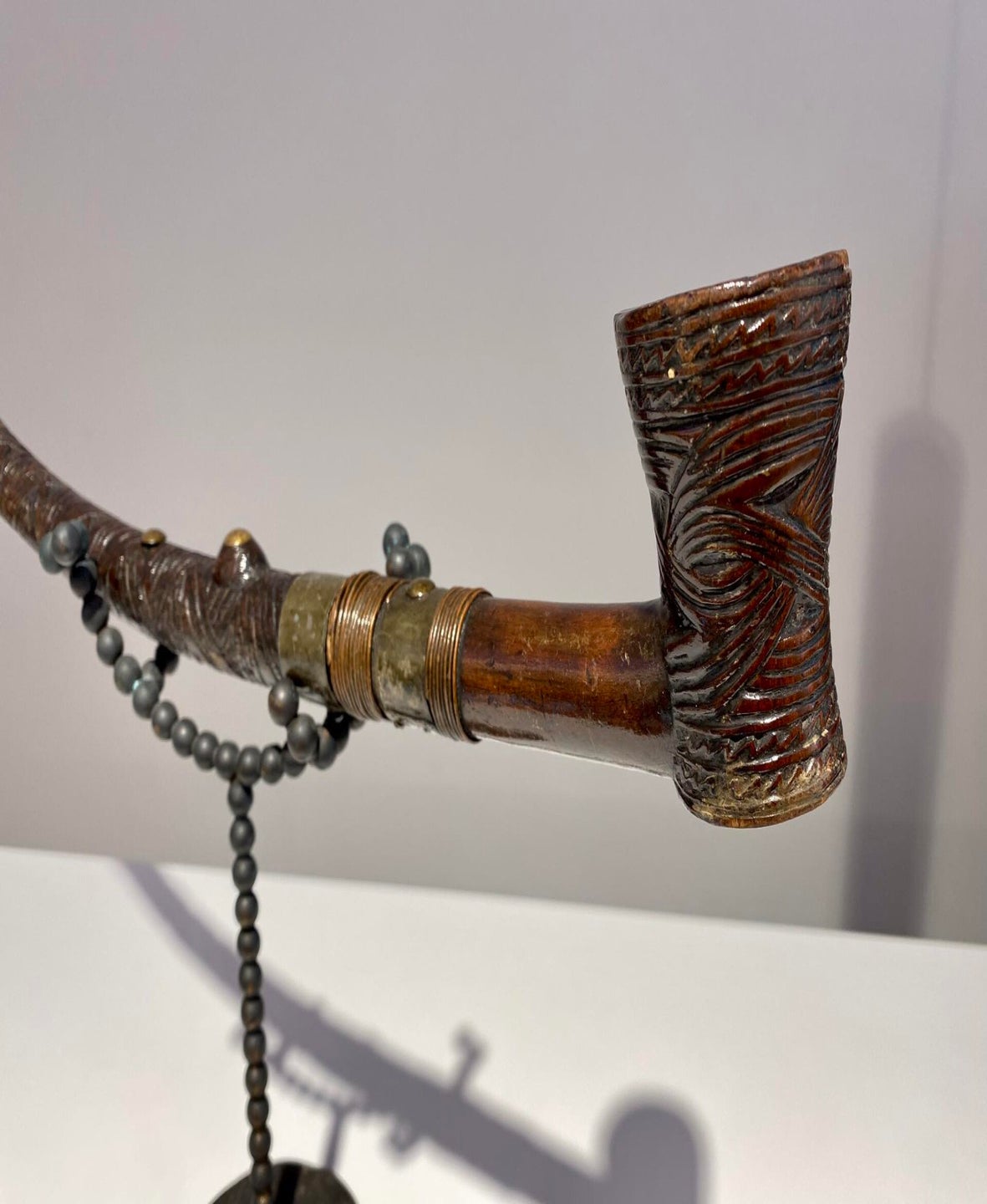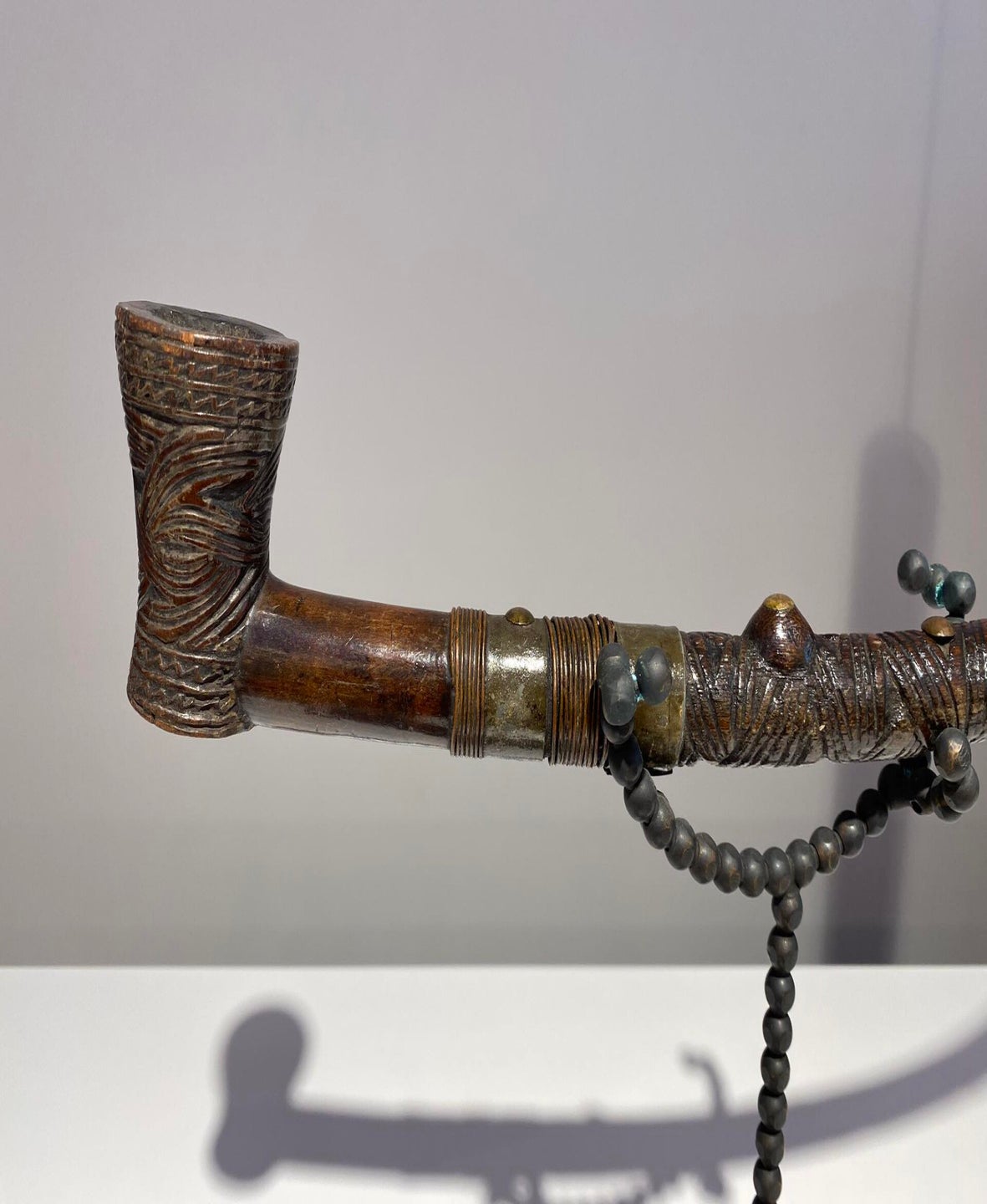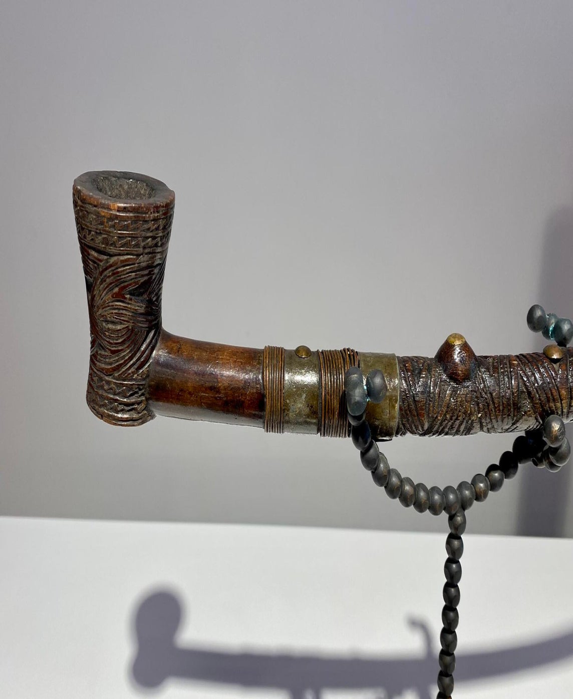 This elaborately carved and ornamented tobacco pipe was not merely a functional smoking implement, but was also emblematic of its owner’s status.