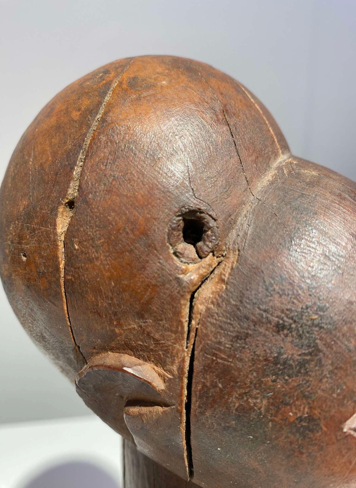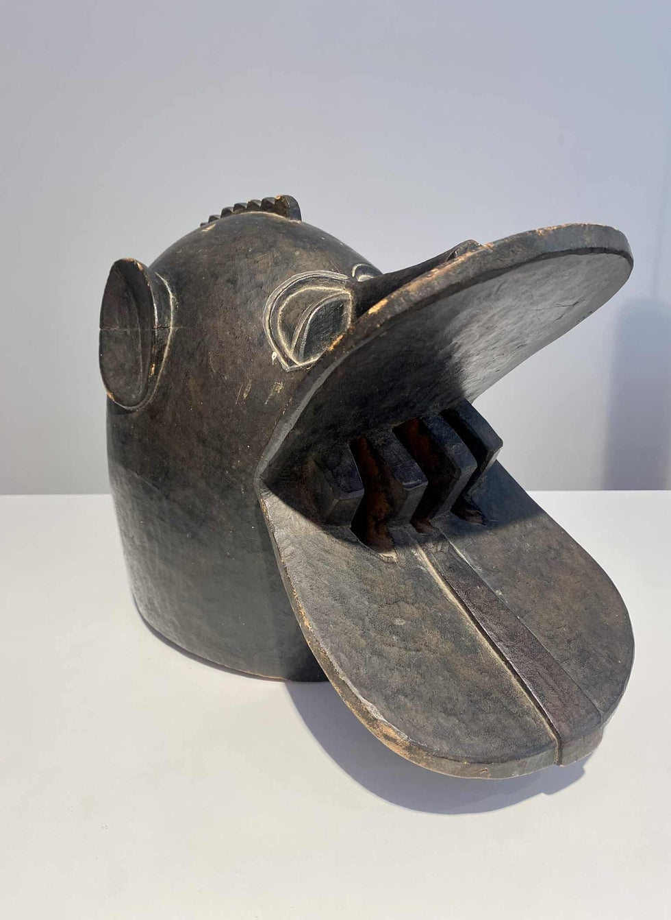 This particular zoomorphic pig or leopard mask was used in connection with the initiation and sequestering the young boys during the mukanda in the bush.