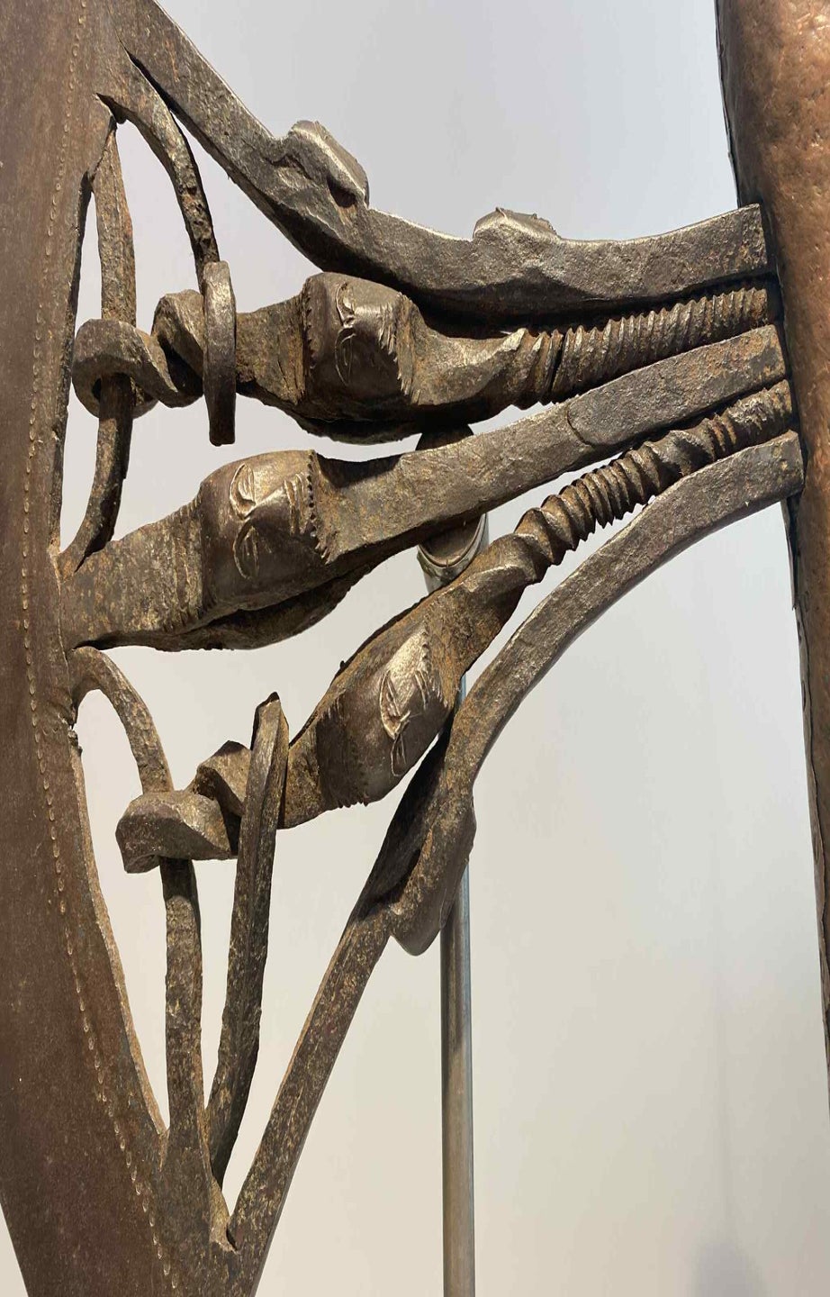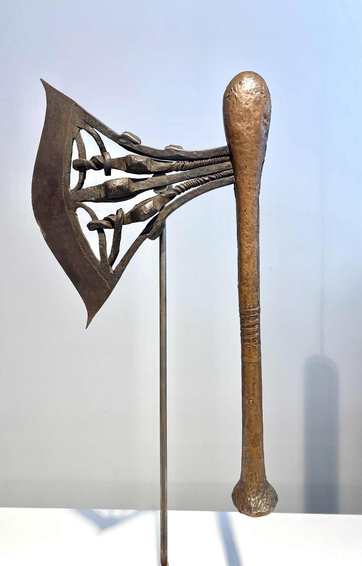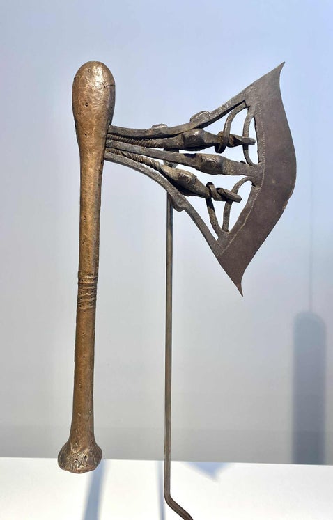 A monumental kilonda axe with 2 messing figures and a total of 22 iron heads.