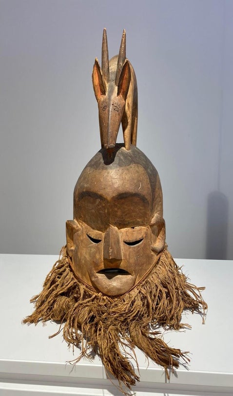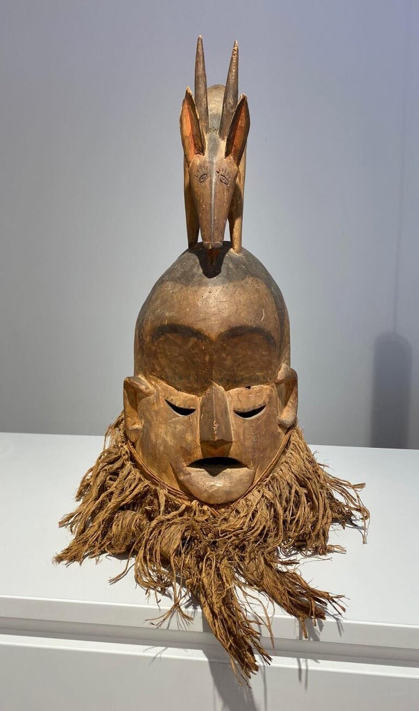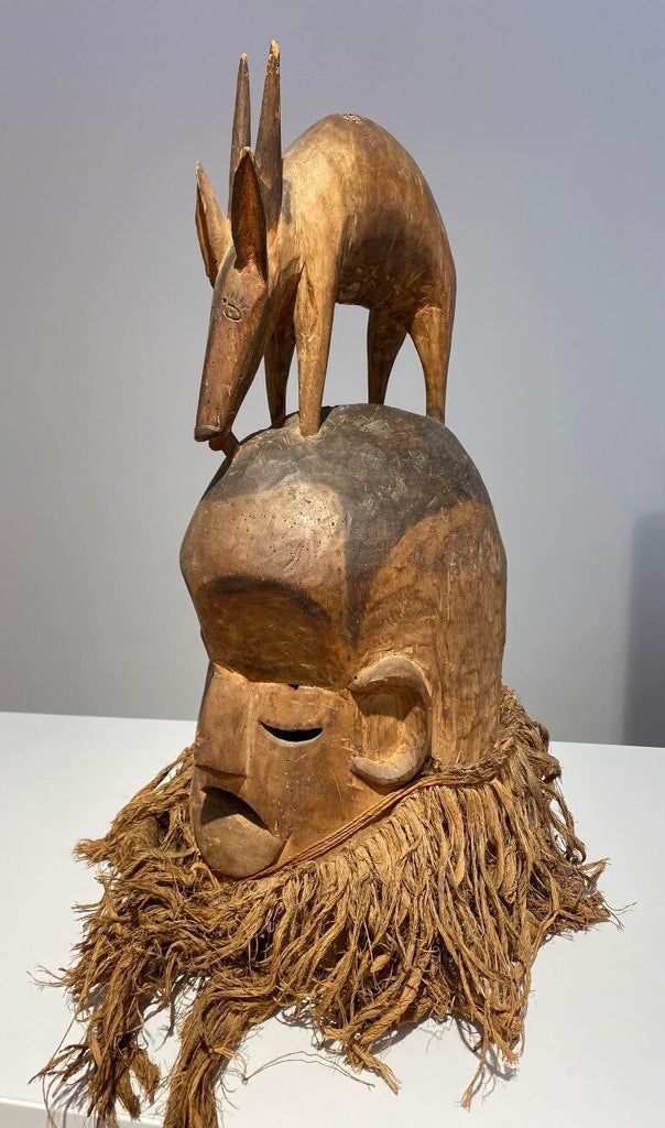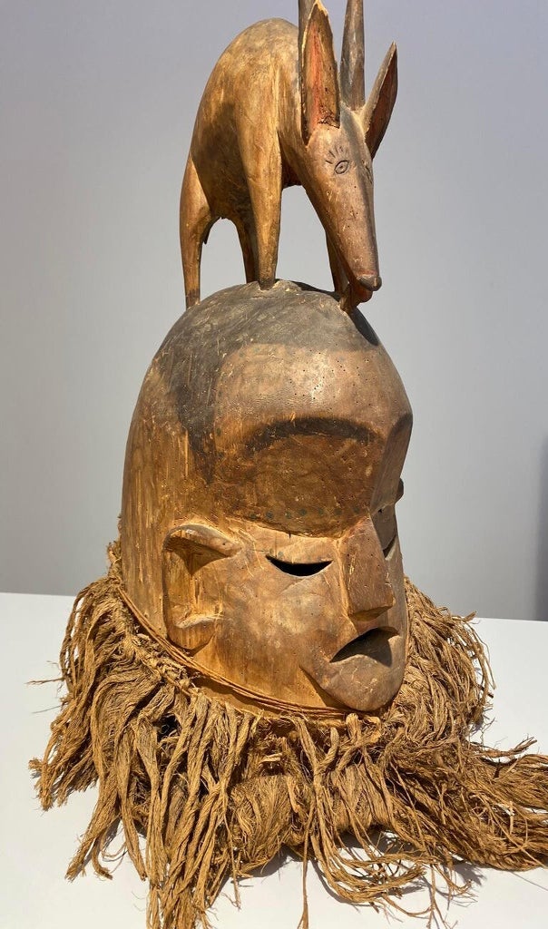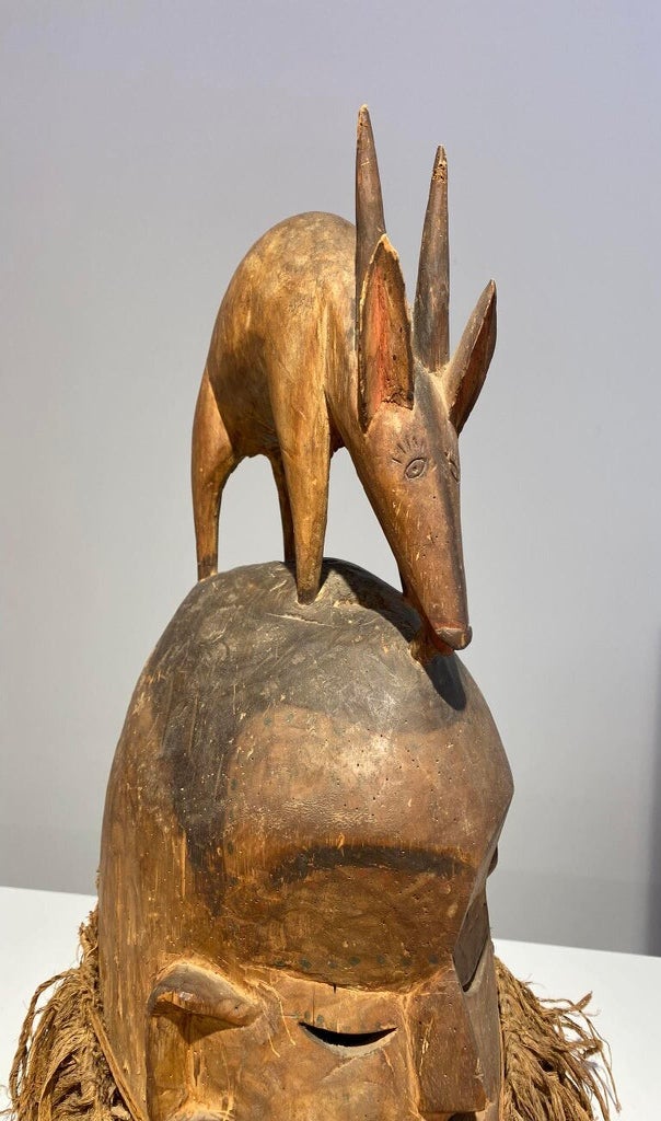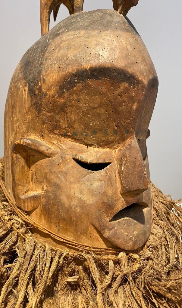 Members of the Poro society, a “secret men’s society,” wear it during the funeral ceremonies of their deceased members to honor them as well as well as ward off evil spirits.