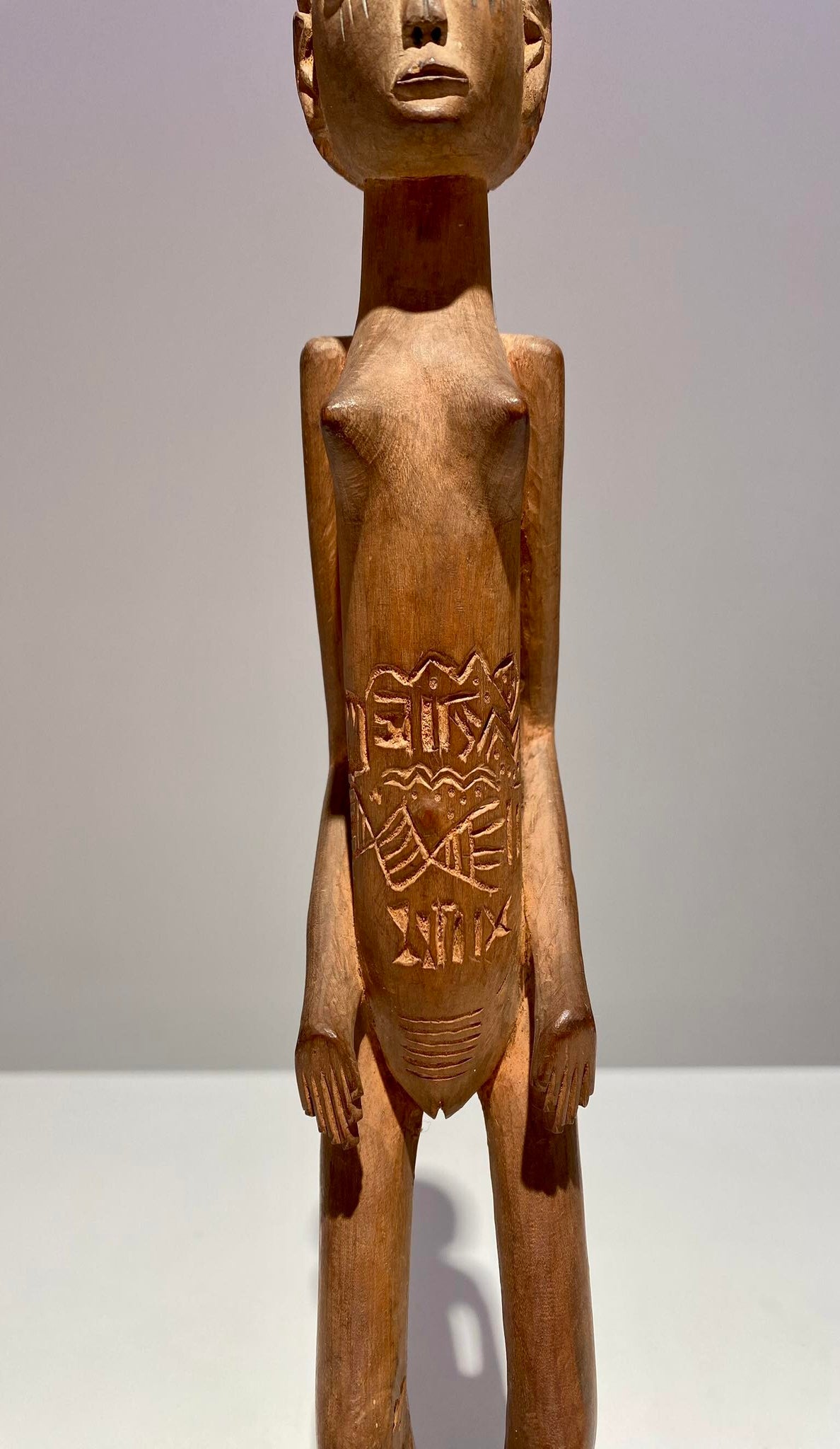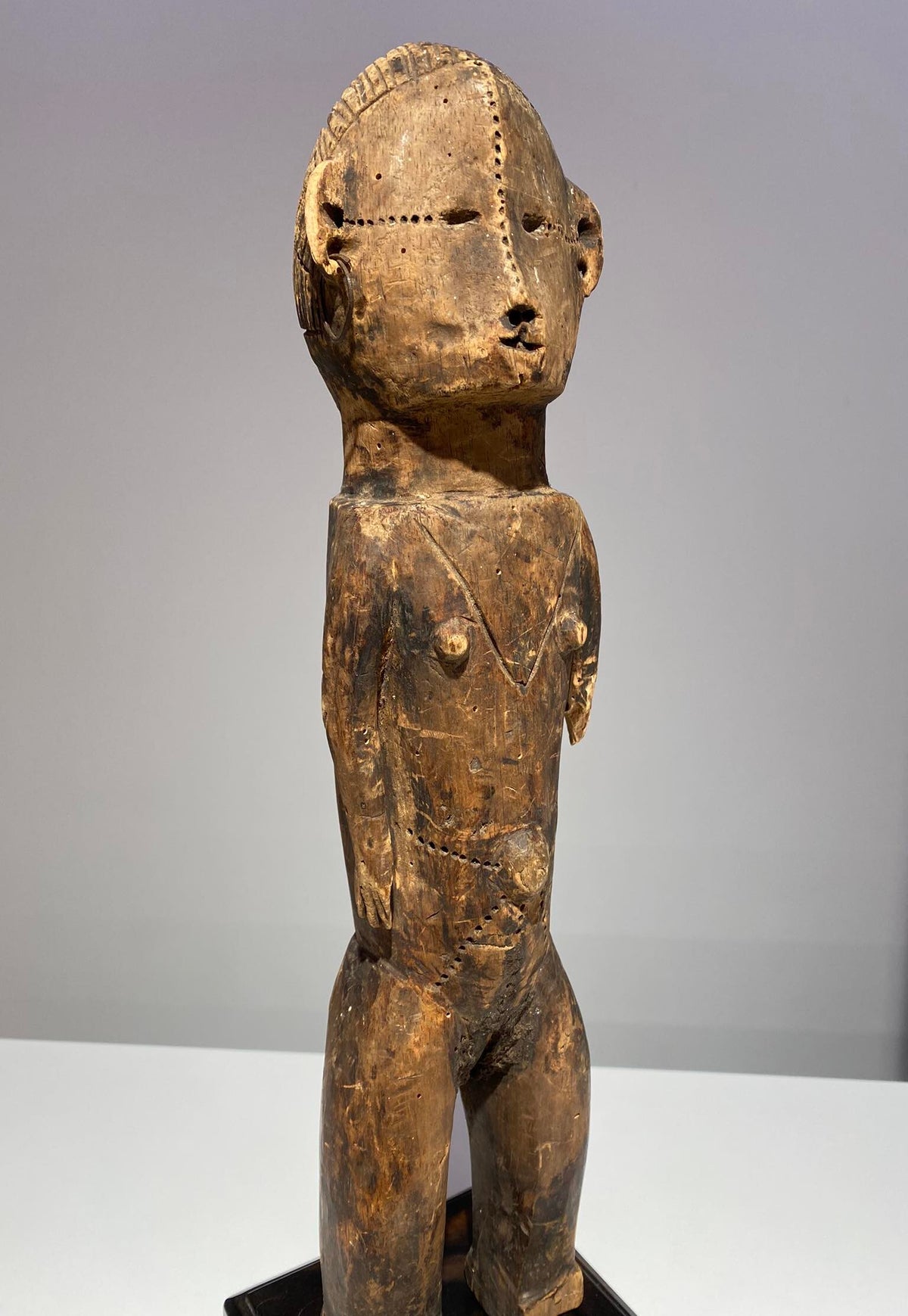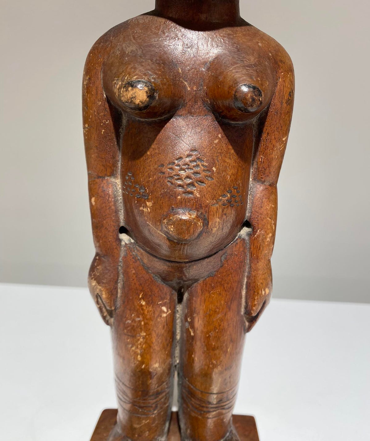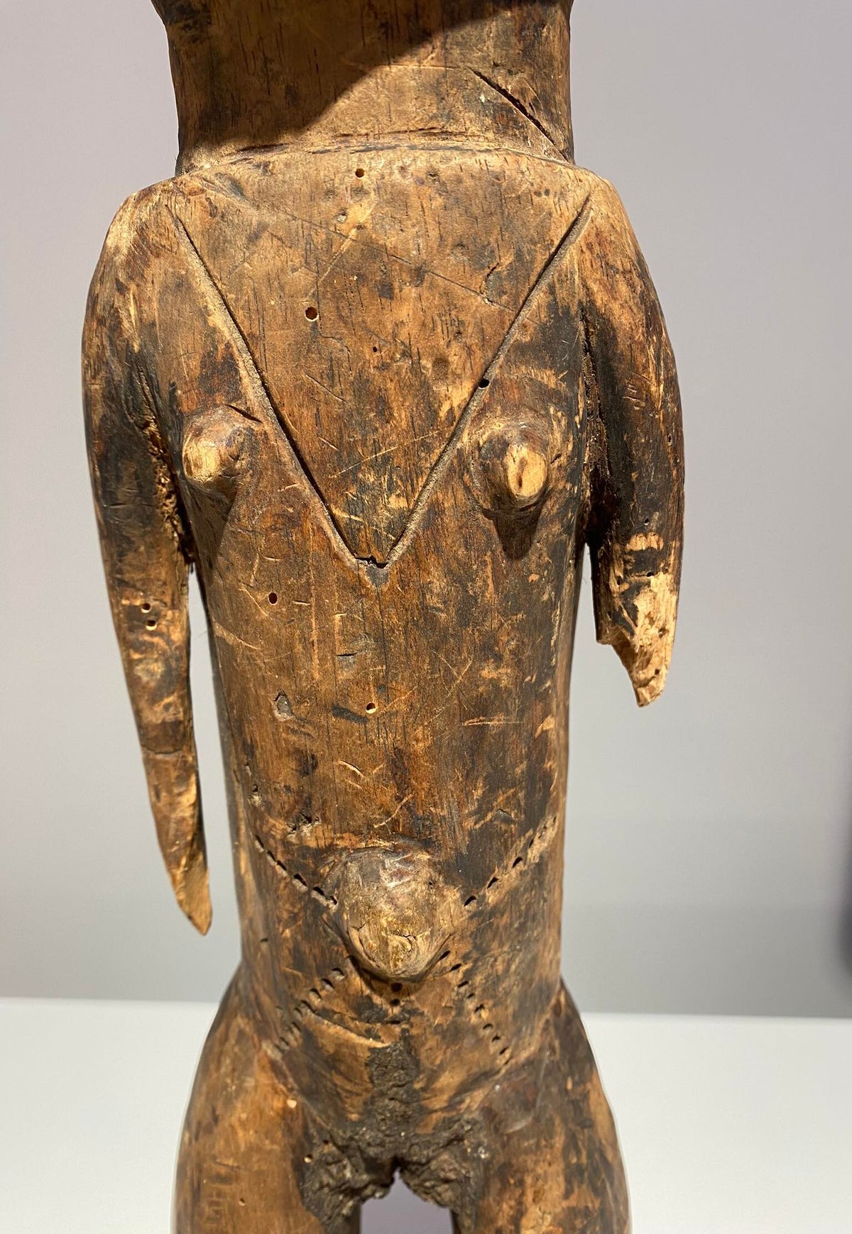 The anthropomorf jonyelini / jo female statue has scarifications on the body.