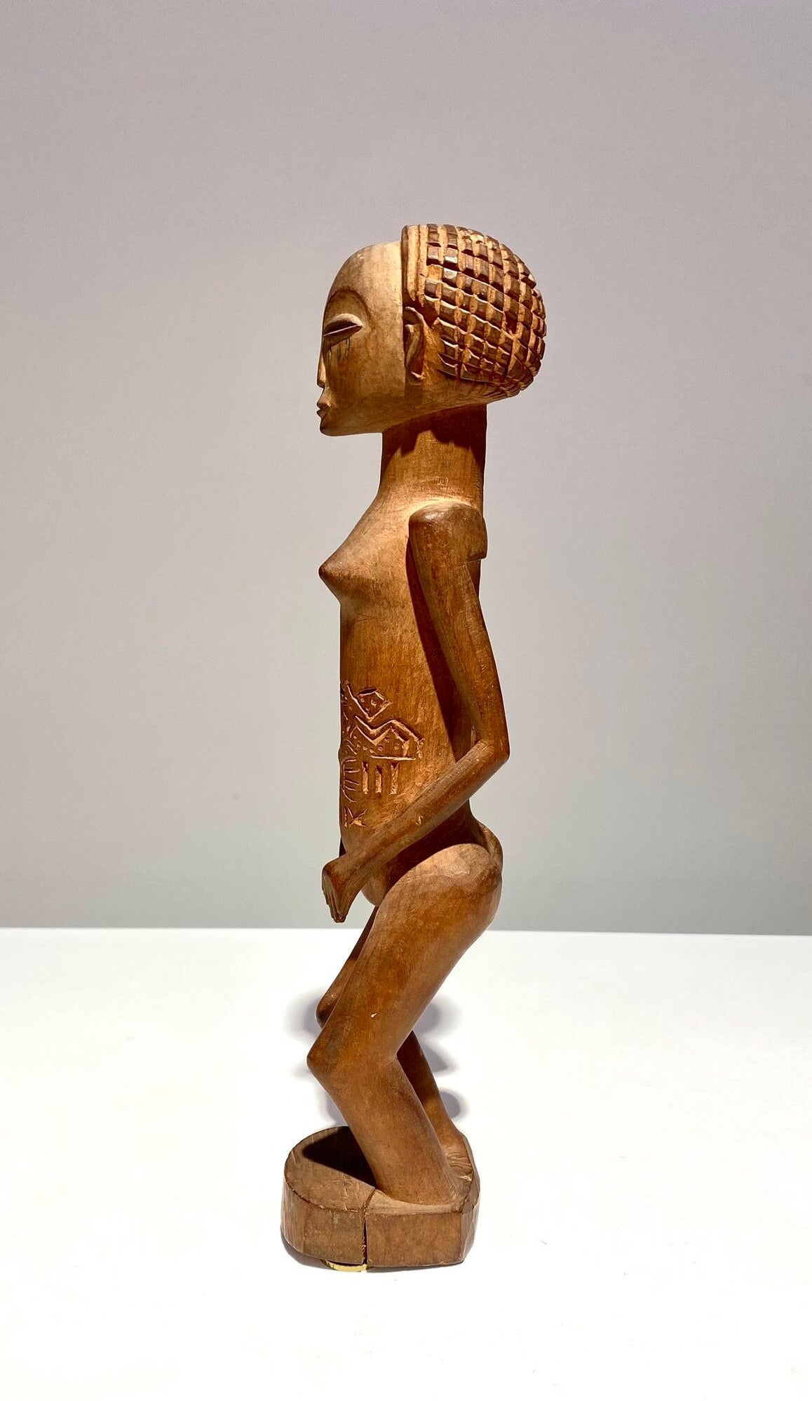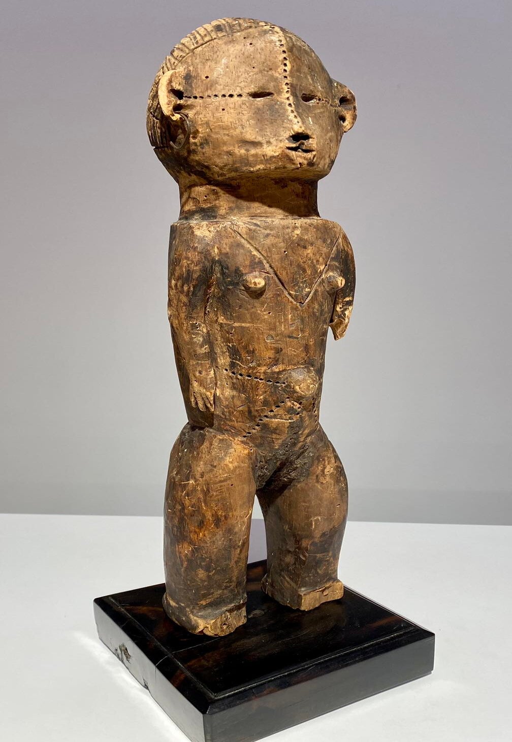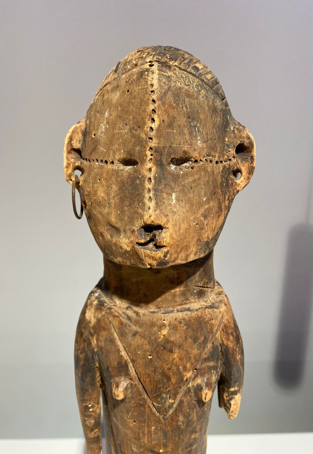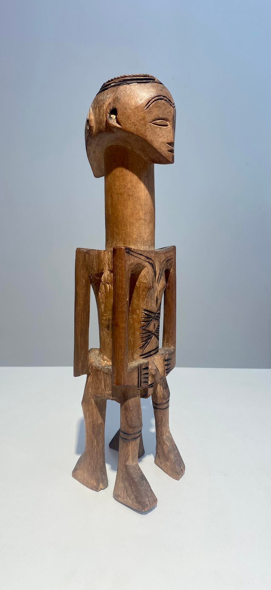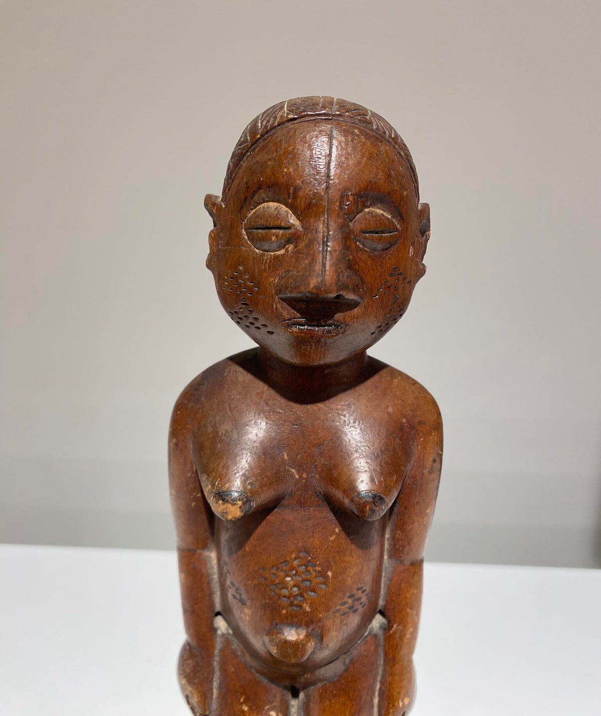 The anthropomorf jonyelini / jo female statue has scarifications on the body.