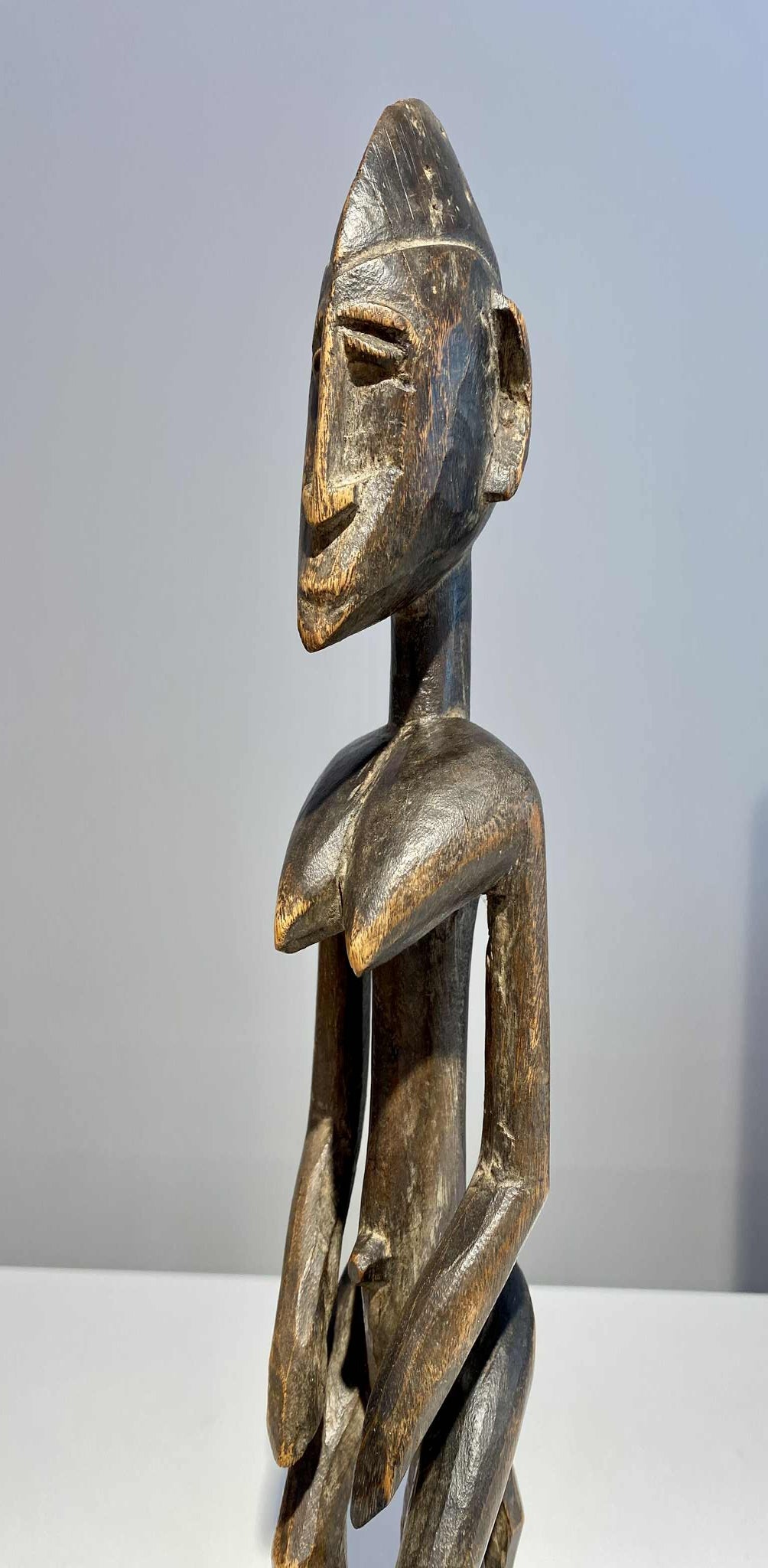 Superb antique and rare museum quality seated female wooden statue from the Dogon / Bamana tribe Mali/Burkina Faso