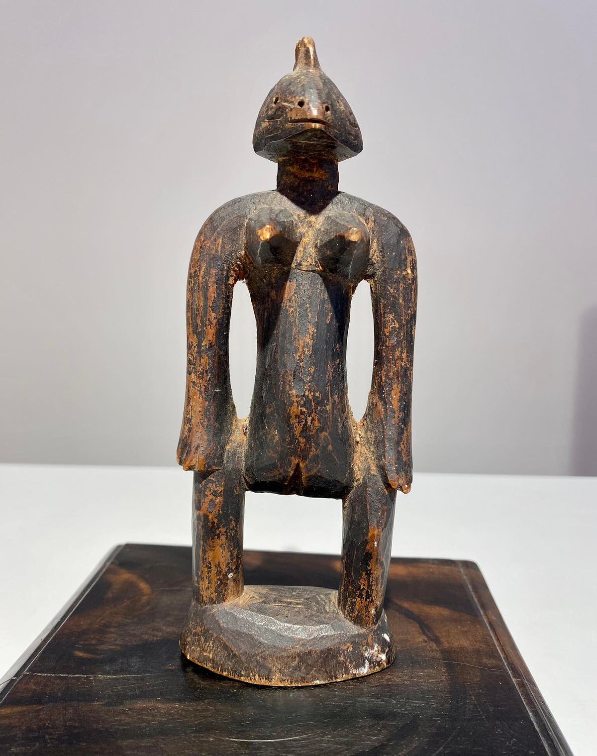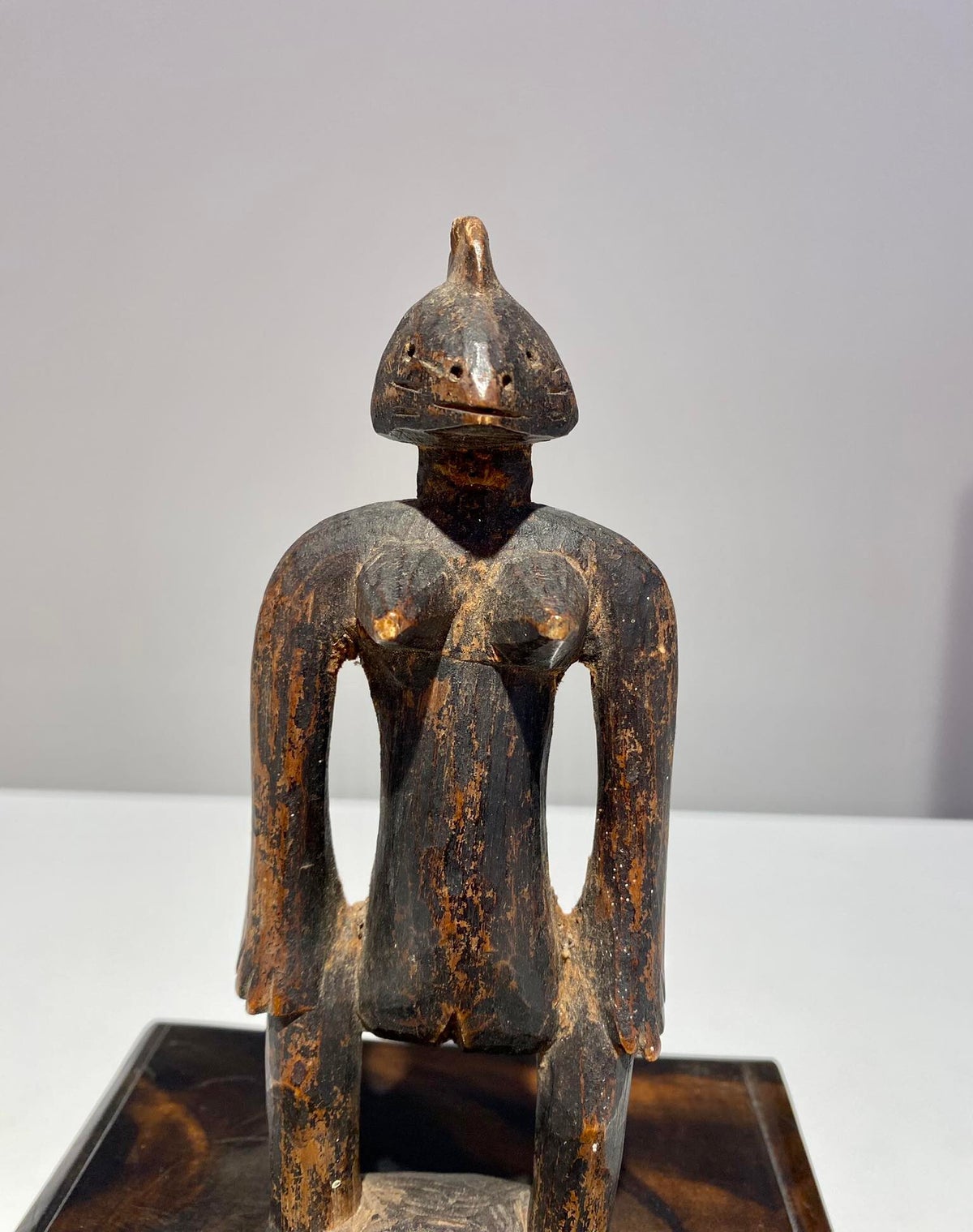 Rare female wooden seated statue from the Dogon tribe located in Mali.