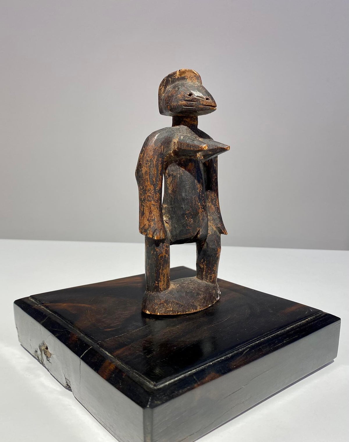 The Dogon are a tribe located in central Bandiagara plateau Mali . Statues from this tribe are particularly scarce. This statue is a most beautiful carving from the Dogon tribe and in exccellent condition.