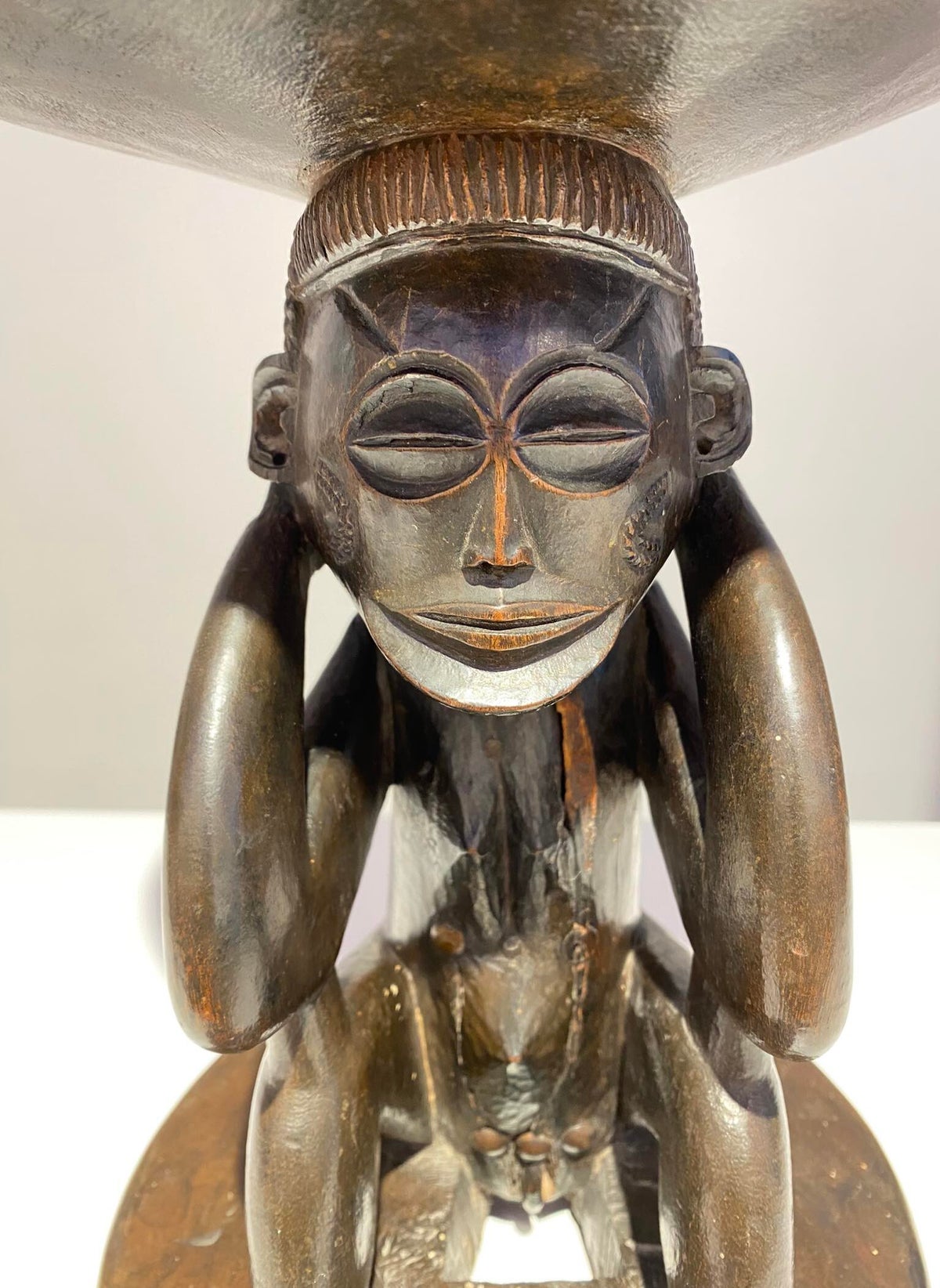 Extremely old unique Luba Royal caryatid enthronement emblem 19th century