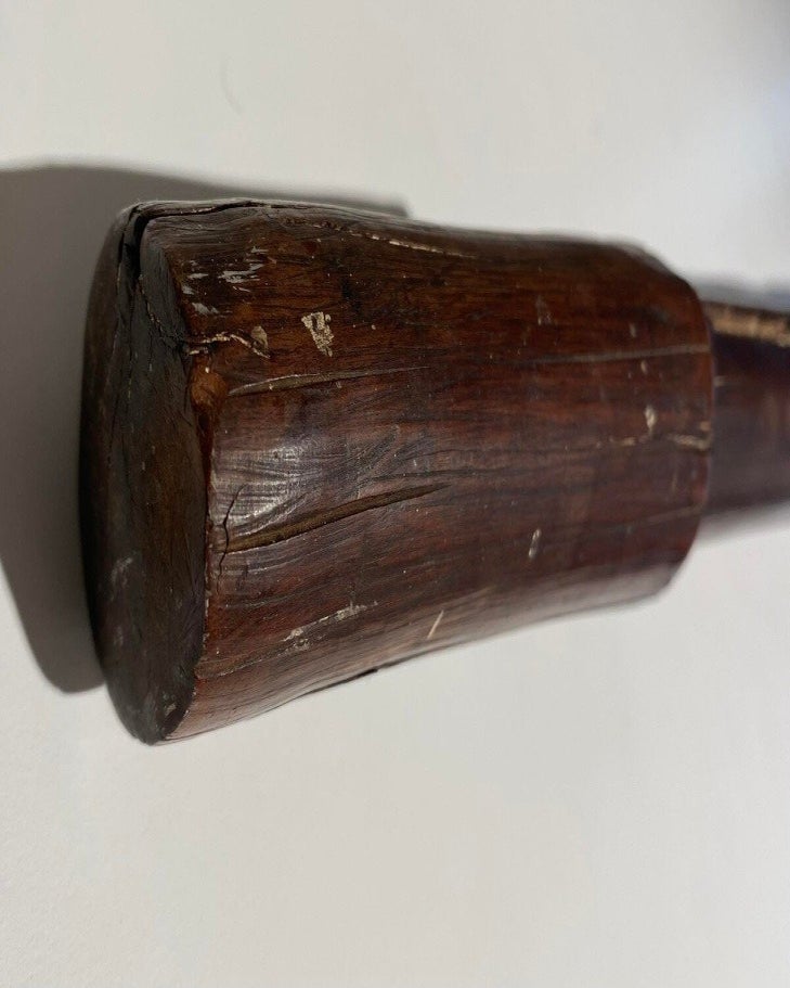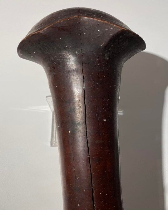 This particular club has a beautiful dark brown to black glossy patina due to age and use.