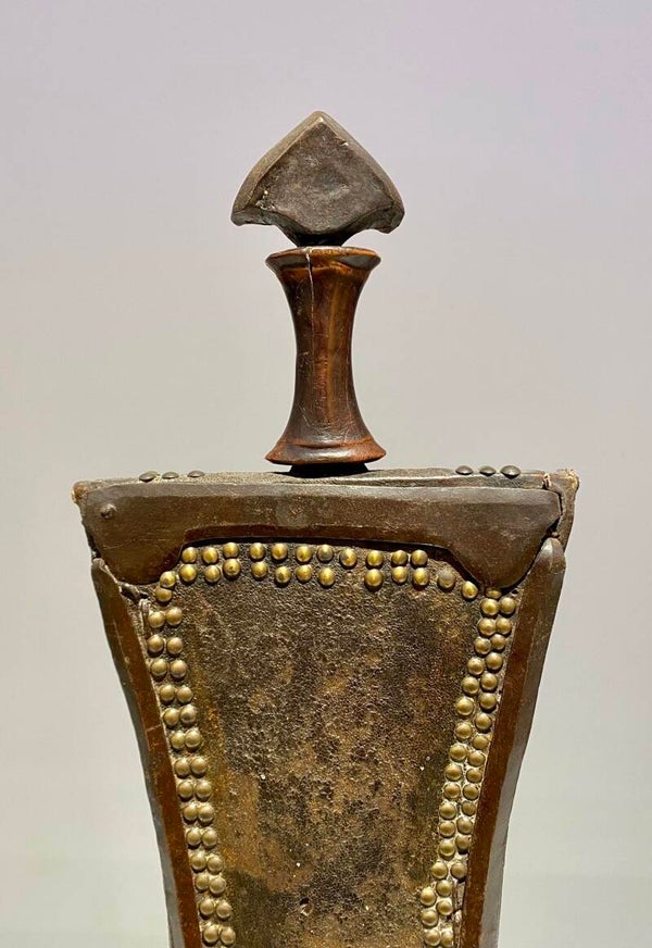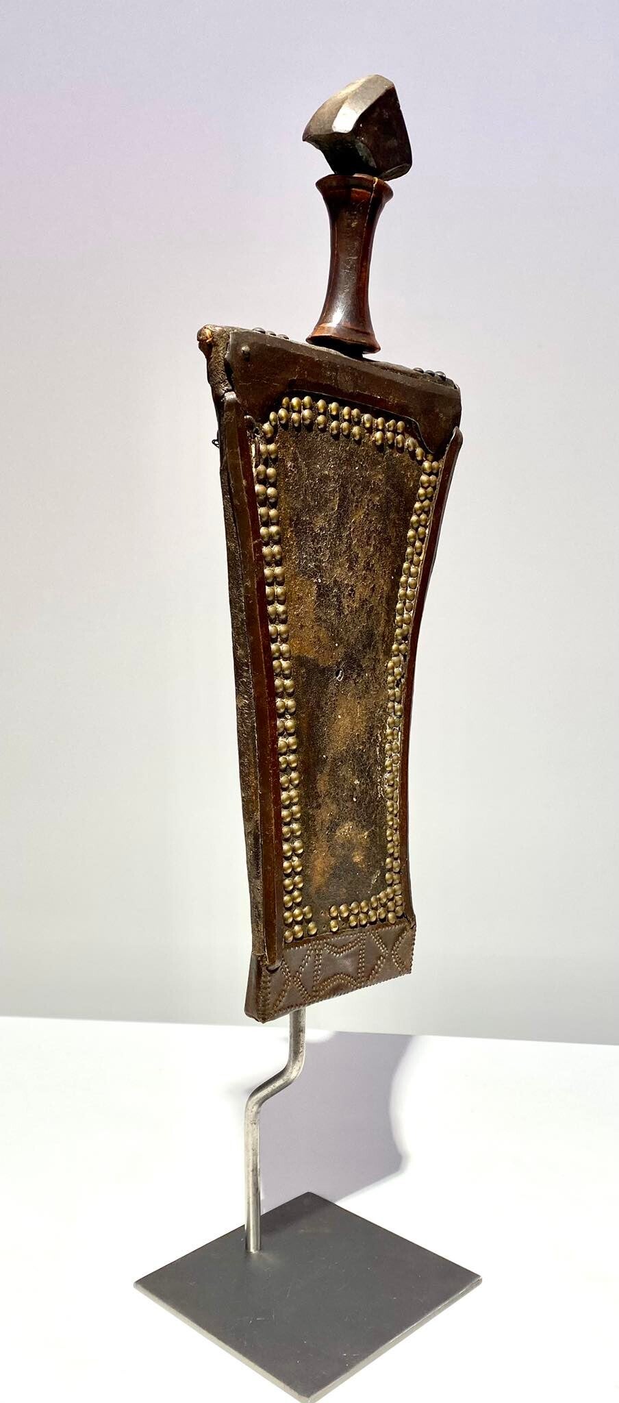 Knife with sheath dld and very rare From the Lokele / Topoke / So / Mba tribe A unique museum piece DR Congo Period: 19th Century - ca 1900 Length: 40 cm with sheath (36 cm knive without sheath) Perfect condition