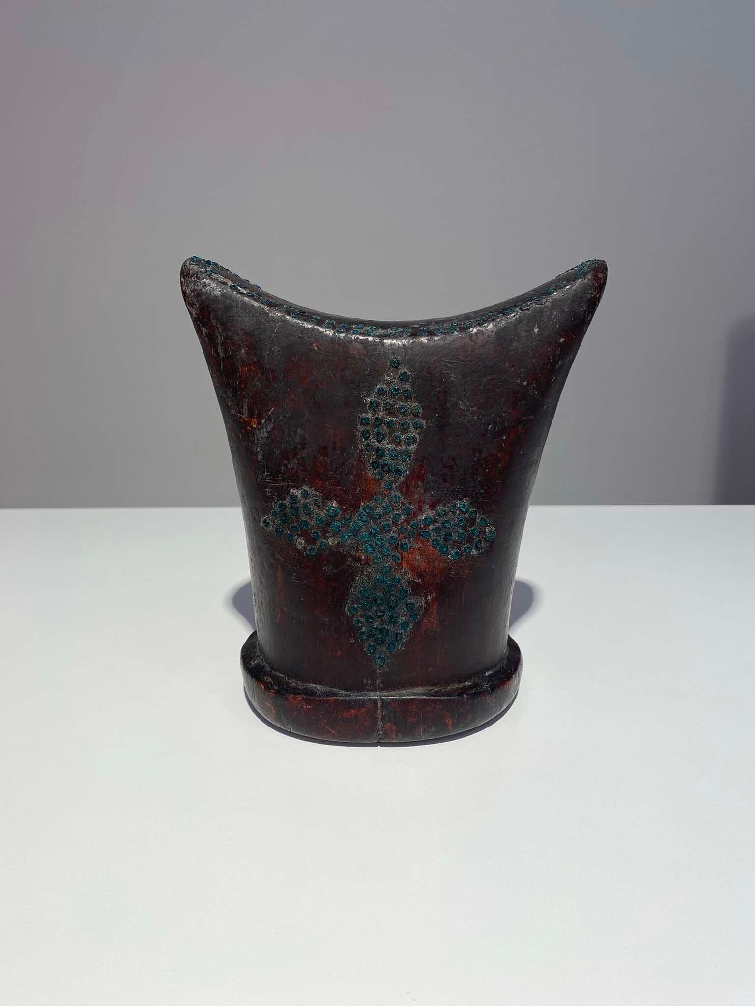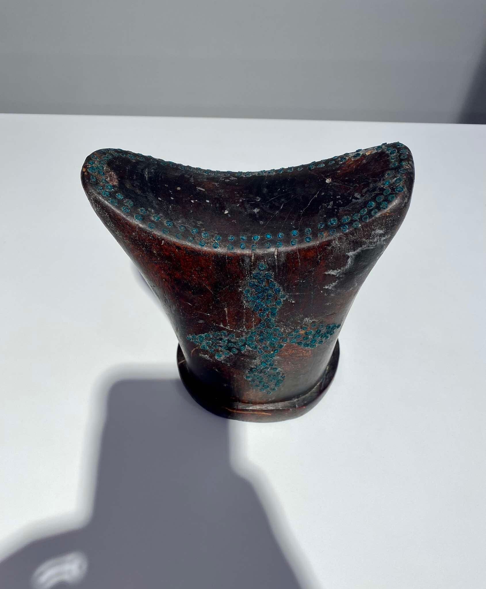 Superb tribal headrest with the Coptic cross with copper inlay( see pictures)