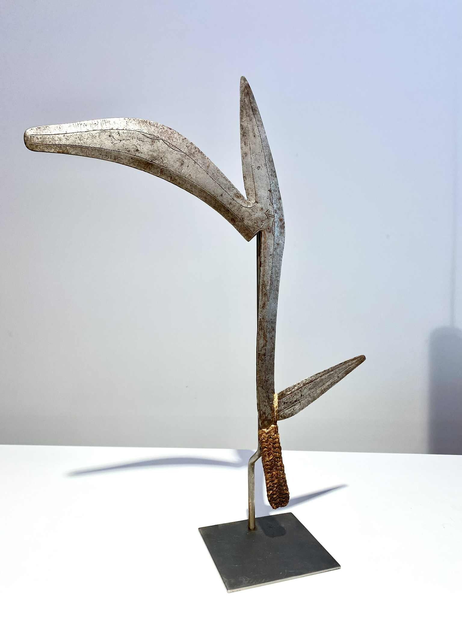 Exceptional quit Big size and rare throwing knife from the Banda / MBUGBU people Ethnic group: BANDA / MBUGBU Region: Central African Republic / DR CONGO Length = 45 cm Period: 19th century / 1900 Very good condition