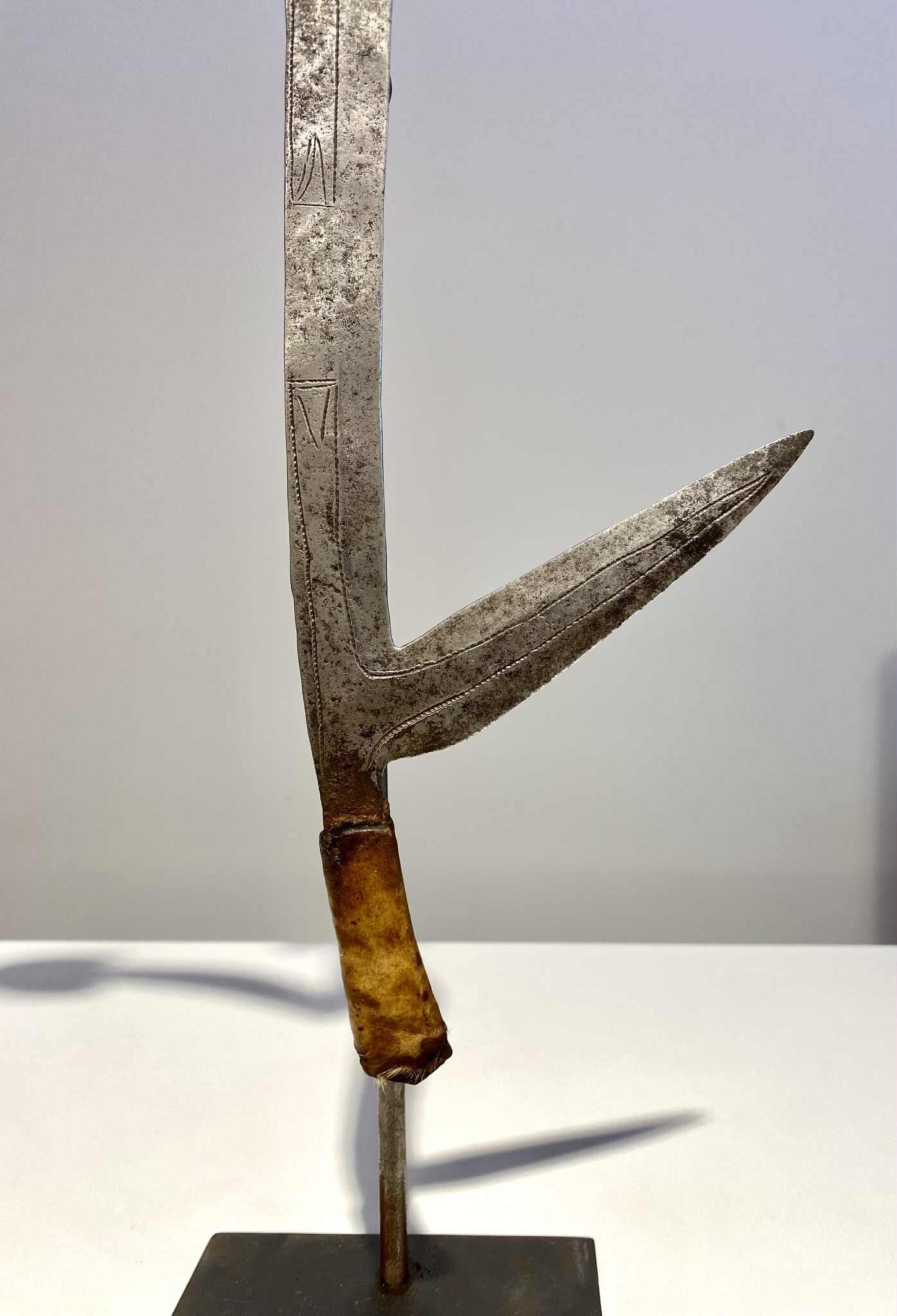 Exceptional quit Big size and rare throwing knife from the Banda / Yakpa people Ethnic group: BANDA / MBUGBU Region: Central African Republic / DR CONGO Length = 42 cm Period: 19th century / 1900 Very good to excellentcondition